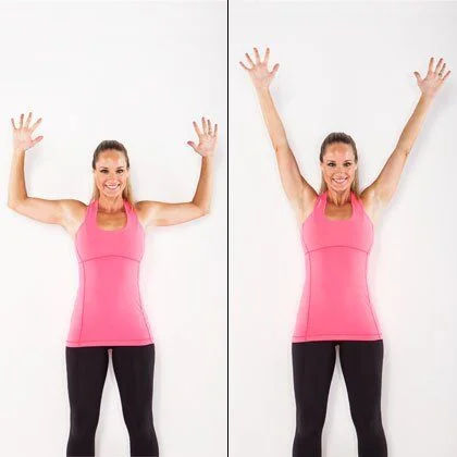 Stand against wall and slide arms upward while maintaining alignment. Repeat 10 times.