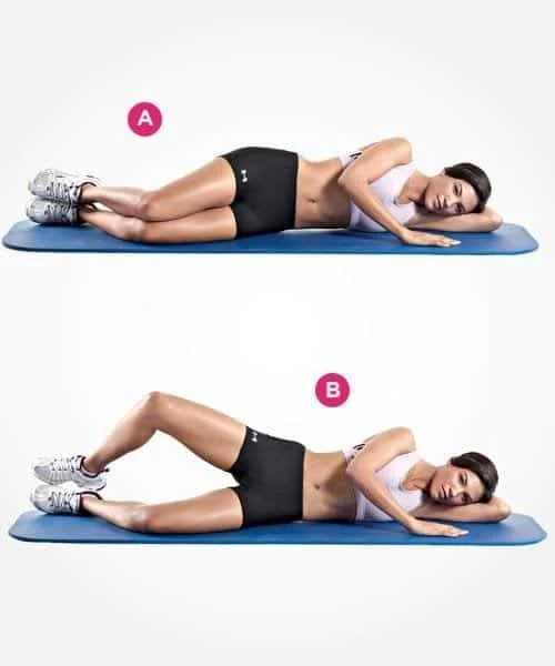 - Keep feet together, lift the top knee.